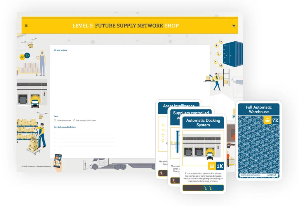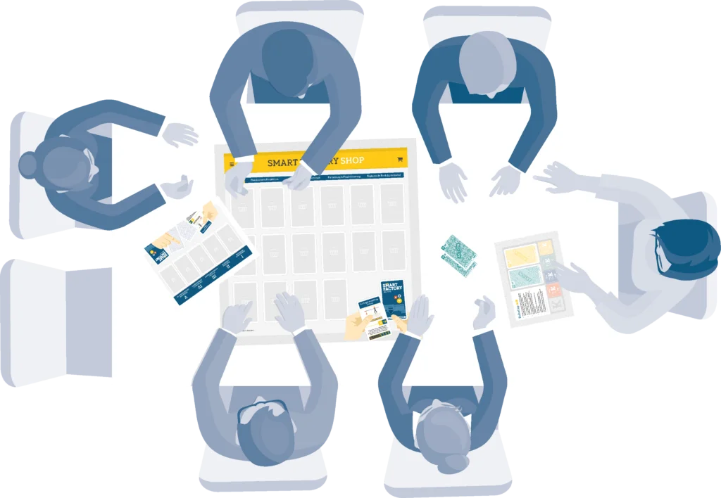 Das kollaborative Planspiel wurde als spielerische Herangehensweise gewählt, das die TeilnehmerInnen gedanklich in die Welt der Digitalisierung und der Fabrik der Zukunft führt. Im Team müssen Entscheidungen getroffen, Lösungen mit Industrie 4.0 erarbeitet und eine Firma gerettet werden.